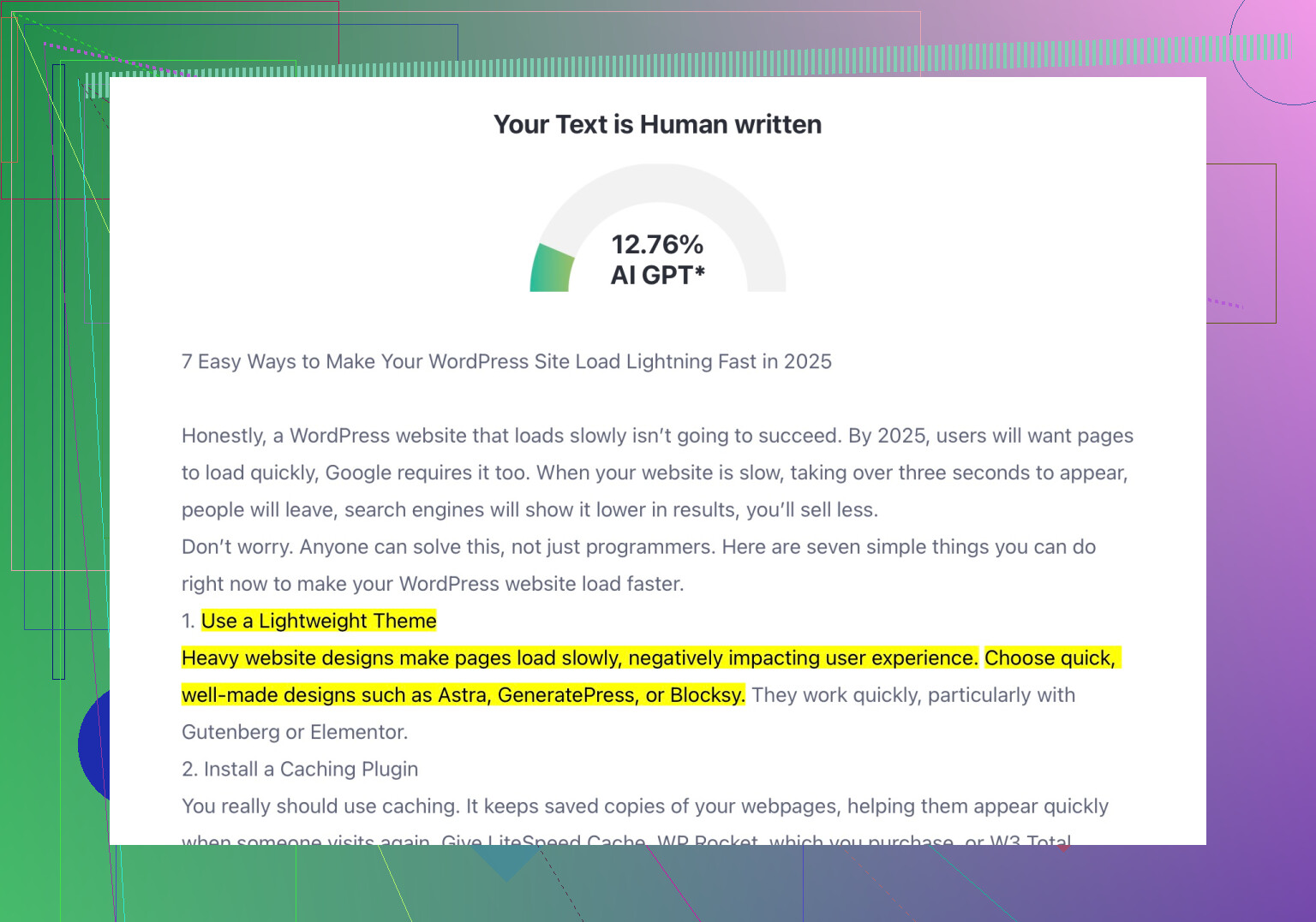 Not bad, actually. Use plain English—think how you’d chat IRL, not how you’d write a dissertation—and this detector can usually be tricked. Not foolproof, but not overly strict either.