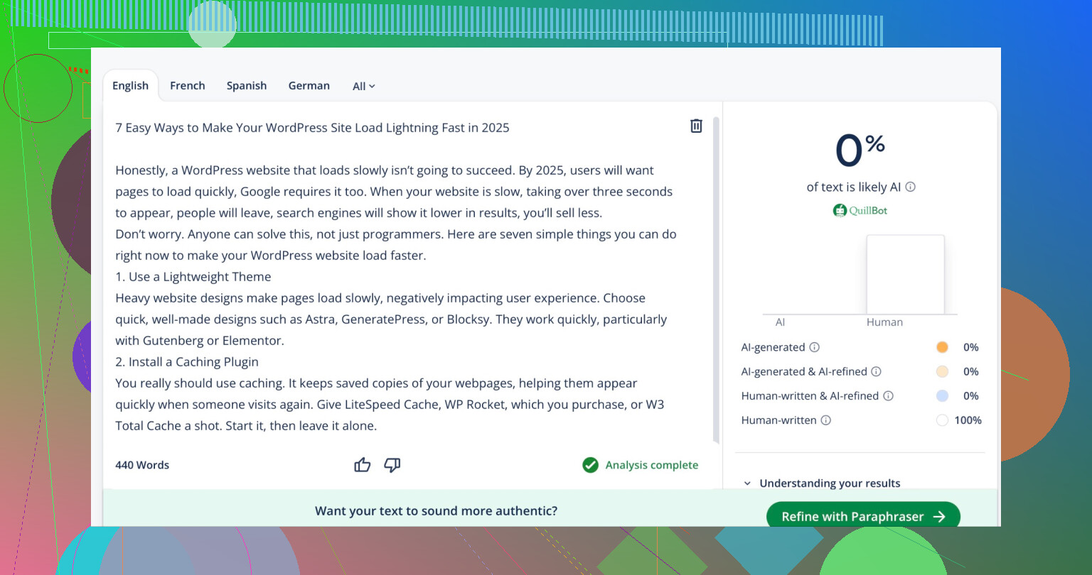 Here’s the thing no one wants to hear: The only foolproof method I’ve seen is going manual. Use an AI tool as a base, rephrase sentences yourself, introduce a few oddball phrasings or typos, and don’t delete the natural errors you’d otherwise correct. Add in a personal anecdote, toss in a mini-contradiction, and avoid perfectly polished paragraphs. No tool gets your “voice.”