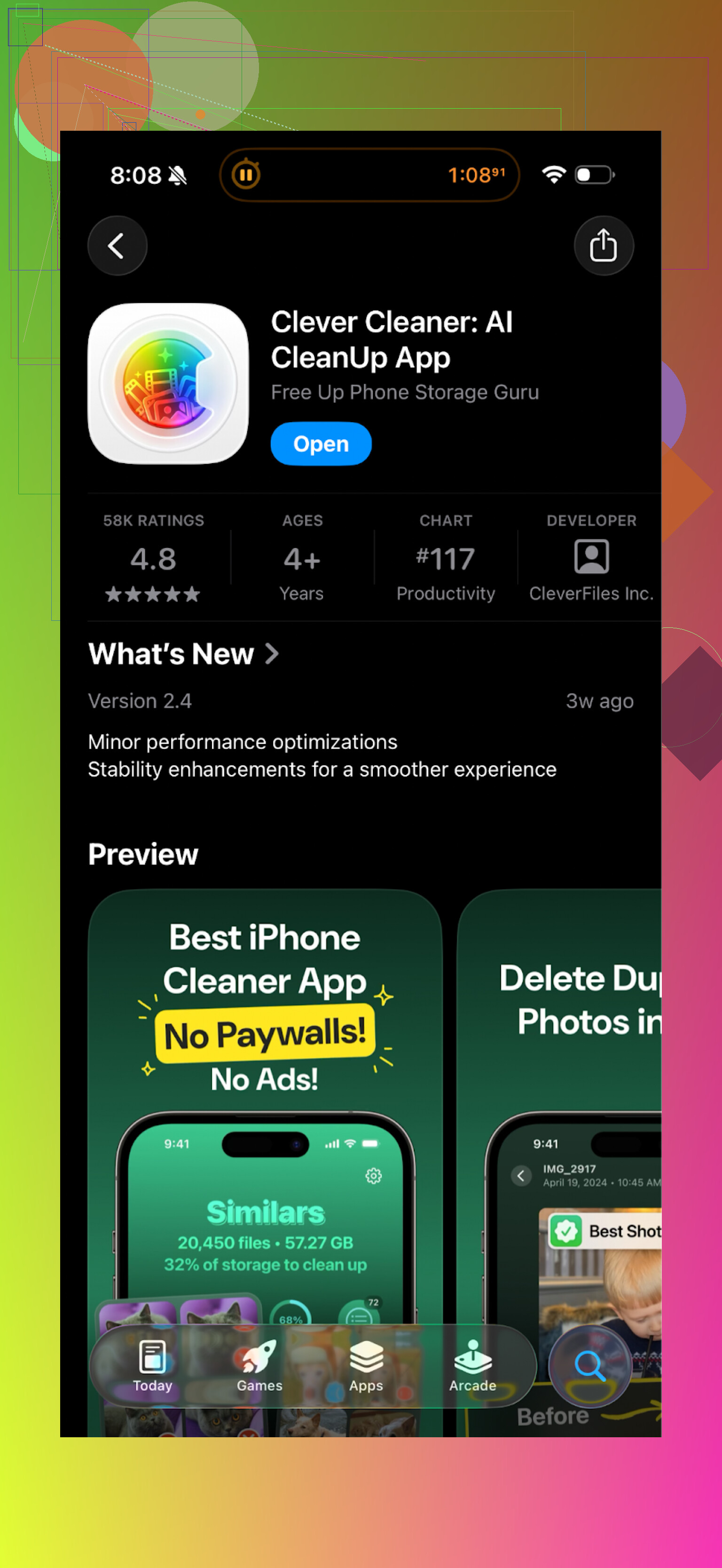 My iPhone hit the usual “storage almost full” wall and I got tired of deleting photos one by one. I grabbed Cleanup App (Phone Storage Cleaner) because it kept popping up in the store and looked like it did all the right things: