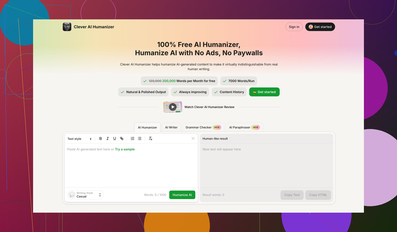 While doing the same round of tests, I also ran content through Clever AI Humanizer.