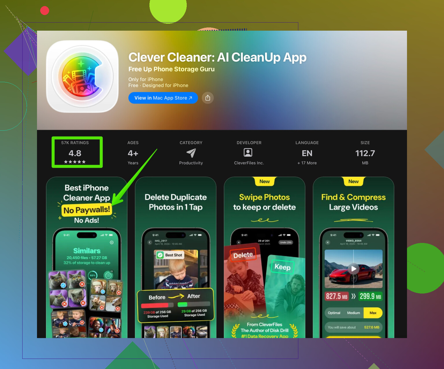 libere o armazenamento do seu iPhone com o Clever Cleaner App